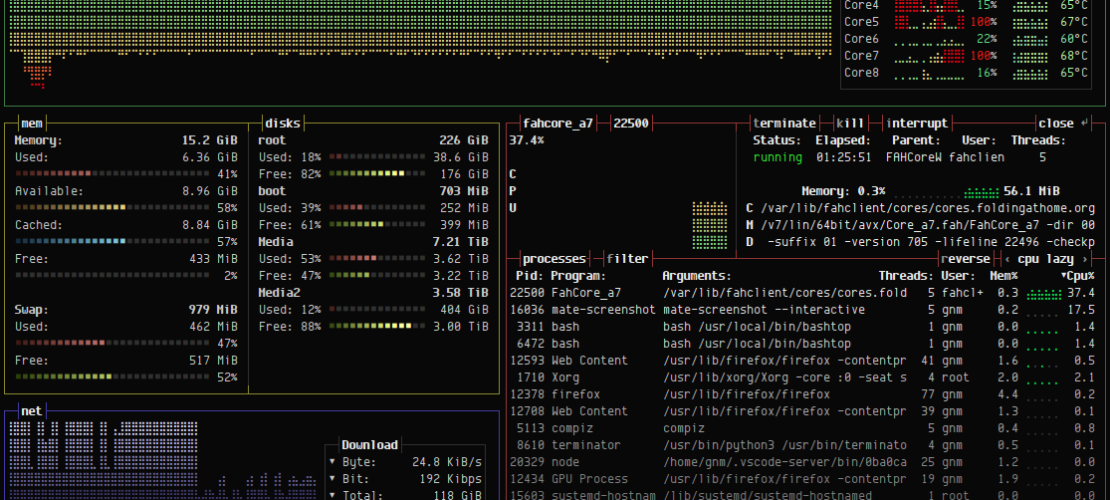 Bashtop adds a lot of useful information when compared to htop. It is definitely a tool that I will keep in my arsenal when it comes to diagnosing issues.